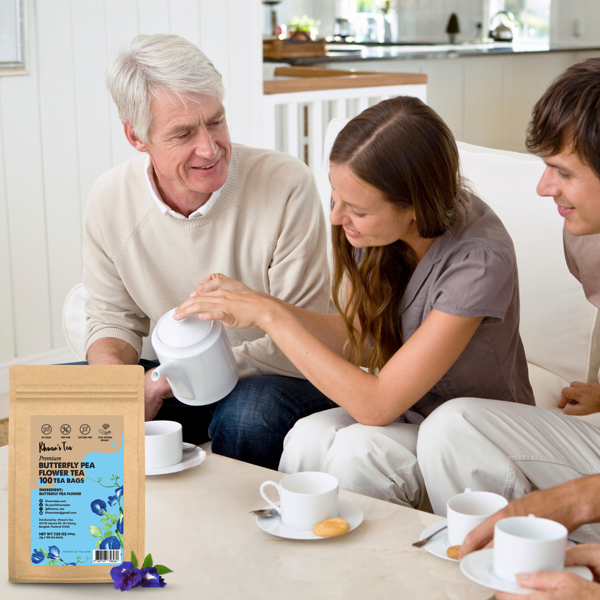 - 100 TEA BAGS: Khwan's Tea Blue Butterfly Pea Flower Tea Bags, perfect for daily enjoyment or sharing with friends and family. Supply last for up to three months. Serving Size: 1 tea bag (2g) / Servings Per Container: 100 tea bags